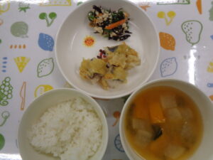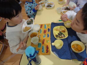 今日の給食には今が旬のほうれん草を使った『ほうれん草の白和え』が登場しましたよ(*^^*)