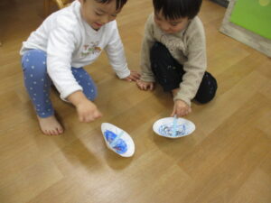 英語が終わると、ふたば組さんはお部屋で制作をしました。