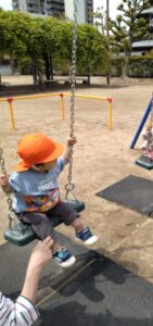 ブランコに乗ると、「〇〇(名前)がー!」と、自分で漕ぎたい思いをしっかりと伝えてくれました😮