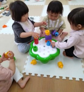 今日のみかん組さんは、室内や公園で遊びましたよ。