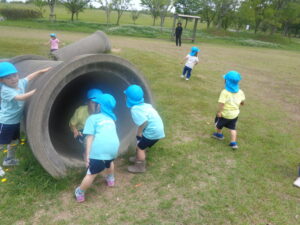 勢いよく引っ張り、しりもちをついているお友だちもいました😆