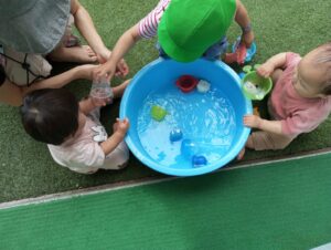 小さなお友だちは、ウォーターマットを出して遊びました。