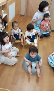 オーガンジーの布遊びでは、お友だちとかけあって遊んでいる姿がとても微笑ましかったです。