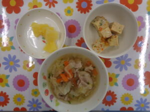 ・ちゃんぽんラーメン・かに卵焼き・パイン缶でした。
