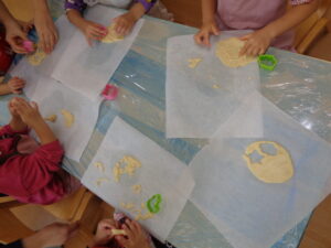粘土遊びで練習したことがよく生かされていて生地を広げるのも、型を抜くのも自分で出来ていました!