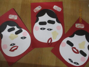 へんてこな顔の出来上がり!目がこんなとこにある!口が飛び出てる!大騒ぎです。