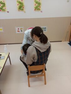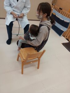 もも組さんは少し泣く子もいましたが、保育者の抱っこでおなかを見せて診てもらうことができました。