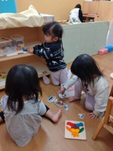 パズルも「こうかな?」「ちがう」などと言って、お友だち同士で協力しあう姿も見られ成長を感じました。