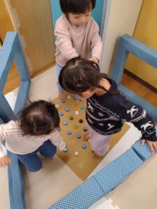 さて、今日のみかん組さんは・・・室内遊びをしました。