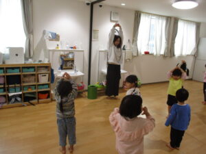 今日は、にじ組さんのキッズダンスの日ですが年長さんと年中さんは卒園式の練習のため参加できません。