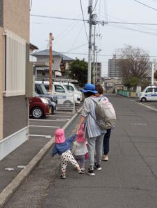 3月も残すところあと4日ですね。もも組のお友だちも4月からはみかん組になります。歩く時のバランスも随分安定してきましたし、意思表示もしっかりと示してくれるようになってきましたね。子どもたちの成長に心がじんわりあたたかい気持ちになりました(#^.^#)今日は公園へ行きましたよ。保育者としっかり手をつないで、てくてく歩みを進めていきます。