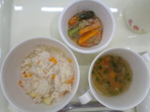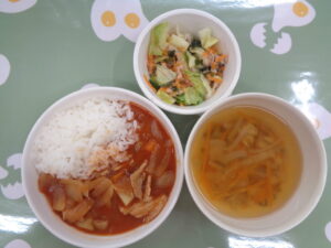 室内で遊ぶ事を楽しんだ後は楽しみに待っていた給食の時間です♪