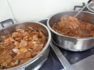 まずは、大きな鍋の中に玉ねぎの皮を入れ、煮出していきます。