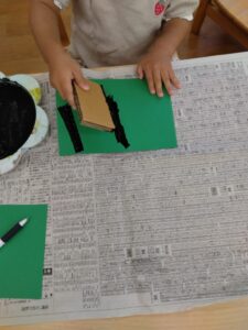 ダンボールスタンプにインクをつけて、ポン!と押します。