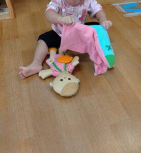 最近のみかん組さんはブロックを携帯電話に見立て使う仕草をするなど、見立て遊びがとっても上手👏今日も、日常のちょっとした行動を真似して見立て遊びとしてままごとを楽しんでいました😊