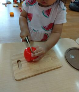「パッカーン」と言いながら切っていましたよ😝大好きなママやパパのことをよく見ているようで、真似がとっても上手です!