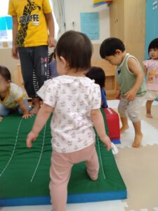 まだまだ元気なみかん組さんは、マットを使って山登り
