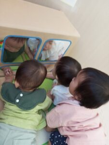 最近では、月齢低いお友だちは自分でハイハイして好きな玩具を取りに行こうとしたり、興味がある場所へ探索しに行こうとしたり、お気に入りの場所でつかまり立ちして、にこっとこちらを見てくれたりと、成長がうれしく思います。^^