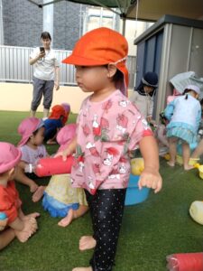みかん組さんの遊ぶ様子を見ていたのか、ペットボトルに「お水を入れて」とうったえてくるお友だちもいました。^^