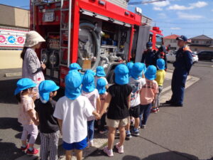 朝からにじ組では「消防車、くるかなぁ・・🚒?」と友だち同士で話しながら、あまりの嬉しさにそわそわしている様子が伝わってきました😊