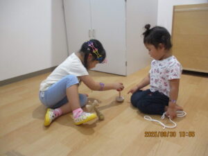 にじ組さんのお部屋には見たことのない玩具がたくさん!!ワクワクしながらお部屋を探検します。