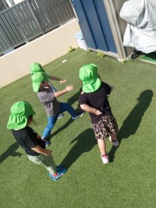 園庭にできた自分の影に気づいた子どもたち、手を振ったり指さして友だちに教えてあげたりと、新しい発見になりました😊