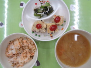 お鍋の中にお野菜をたくさん入れて「せんせいどうぞ」とお料理をつくってくれたり