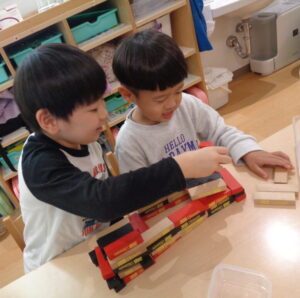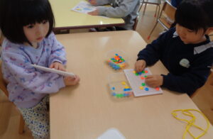 好きなお友だちとお話ししながら同じ遊びをしたり、異年齢のお友だちに遊び方を教えててあげたりとっても仲良く遊んでいました。