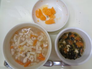 沢山遊んだ後は、大好きな給食の時間です。