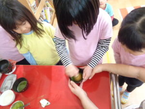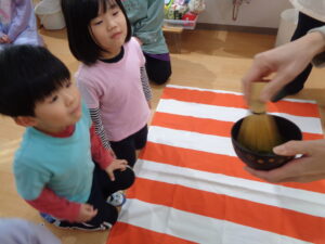 その後年長さんは先生に向けて美味しいお茶をたてる体験をしましたよ🍵✨