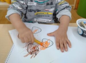 大好きなキャラクターを保育者に描いてもらうことが多かったのが、今は自分で描くことを楽しんでいます。以前したシール貼りを思い出して「シールちょうだい」と保育者に伝える子もいました。やりたいことをしっかり伝えることができ、好きな遊びを集中して楽しむ時間も長くなっています!