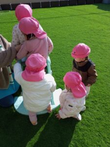 その後は、園庭のすべり台で遊びましたよ。