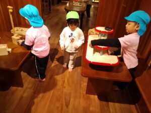 お約束を守って気を付けて遊んできてね。と伝えるとみんな自分が遊びたいコーナーへ素早く行っていました。