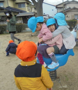 スプリング遊具に3人で!?気をつけて~💦