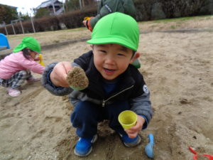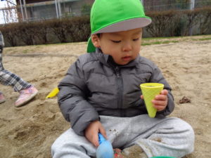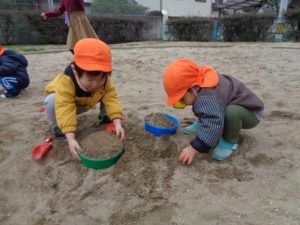 砂場でアイスクリームやケーキを作って、パティシエ気分♬