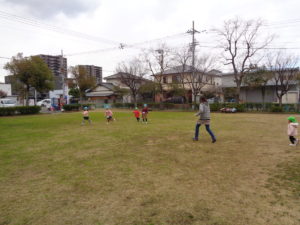 今日は、お天気は曇りでしたが、みんな大好きな外遊びをしました。