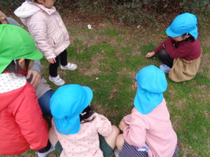 みかんぐみさん、ふたばぐみさん、にじぐみさんは、近くの公園へ行きました。