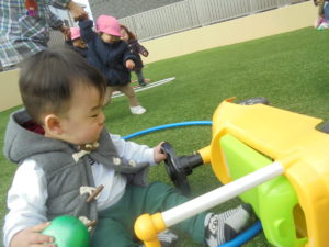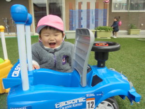 園庭では、ももぐみさんだけだったので、大好きな車を独り占めできて、大満足♡