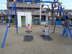 ぶらんこや滑り台で、お友だちと仲良く遊びました。