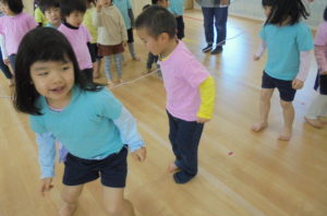 今日は長縄跳びに挑戦しました!出入りのタイミングが難しかったようですが、お友だちの応援の声に背中を押されて、勇気を出して頑張りました(^^)/