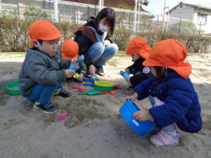みんなで協力をして山を作ったり、アイス屋さんを開店して「いらっしゃいませ!」とすっかり店員さんになりきって遊んでいました。帰る時にはもっと遊びたくて「やだーーー!!!」
