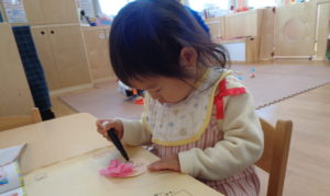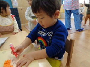 みかん組は製作で、顔を描きました。