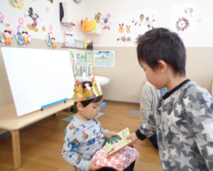 そのあとは、ひなまつりの由来のお話を聞いたり、ひなまつりの歌をうたったりして楽しみました。