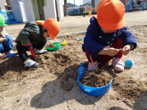 誕生日会&ひなまつり会のあとは、みかん組さんとふたば組さんは公園に行きました。