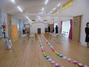 3・4歳児のお友だちも在園児として参加して、お別れの言葉や歌を大きな声で歌い卒園児のお友だちに送りました。