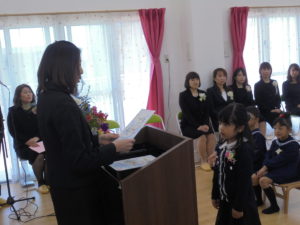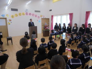 卒園児のお友だち、保護者の方、本日はご卒園おめでとうございます。