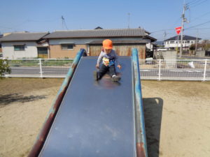 ここの公園の滑り台は広くて滑りやすいんだよ😊