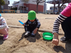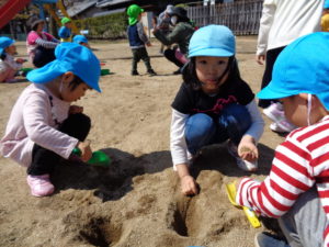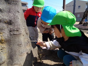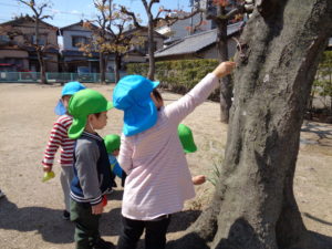 「先生見て見て~」と虫を見つけて見せてくれる子もいました。