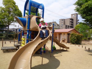 急な勾配のすべり台も、先生と一緒ならへっちゃらです(*^-^*)