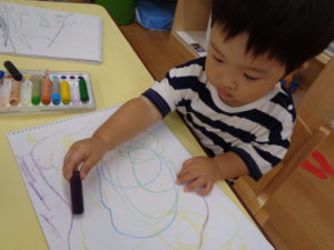 製作では、クレヨンと絵の具を使って上手に描いていました(*^_^*)